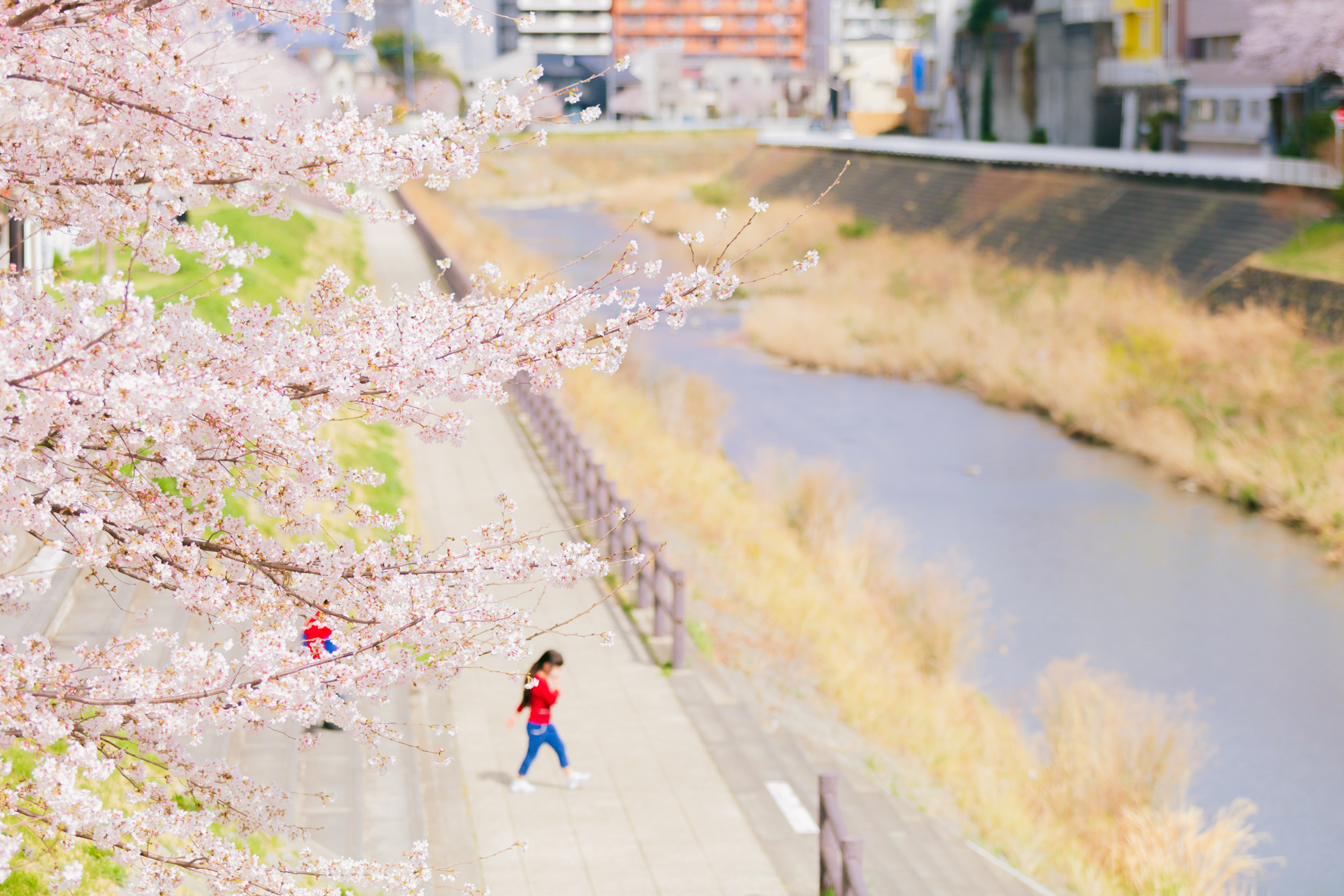 大栗川沿いではたくさんの人が散歩をしたり花見をしたりしています
